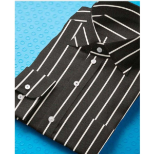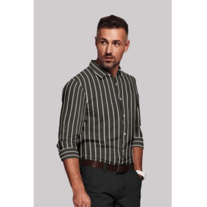 Generic Men’s Cotton Blended Striped Full Sleeve Shirt (Black-White)